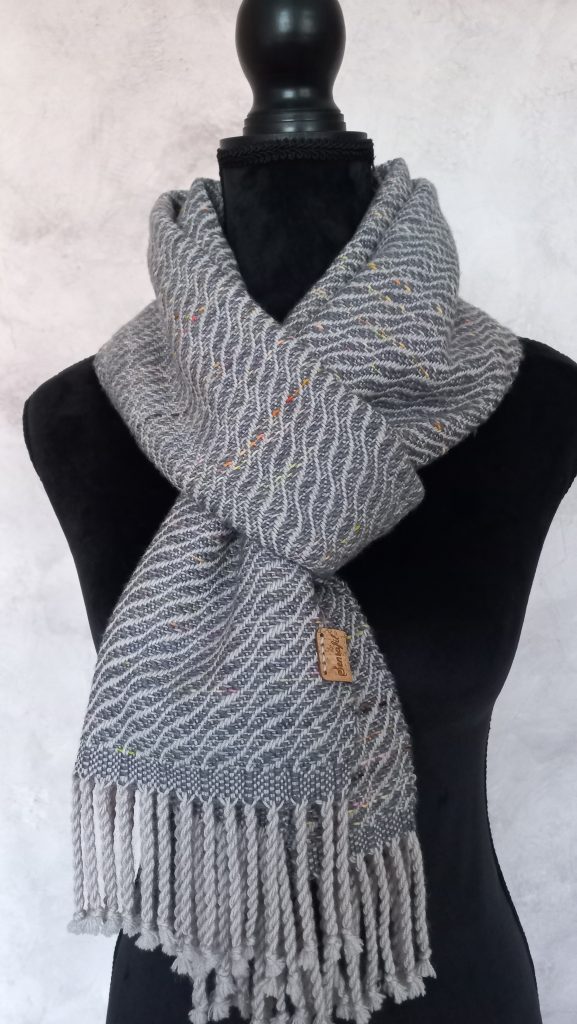 Cette écharpe en laine Mérinos, tissée à la main, vous séduira par