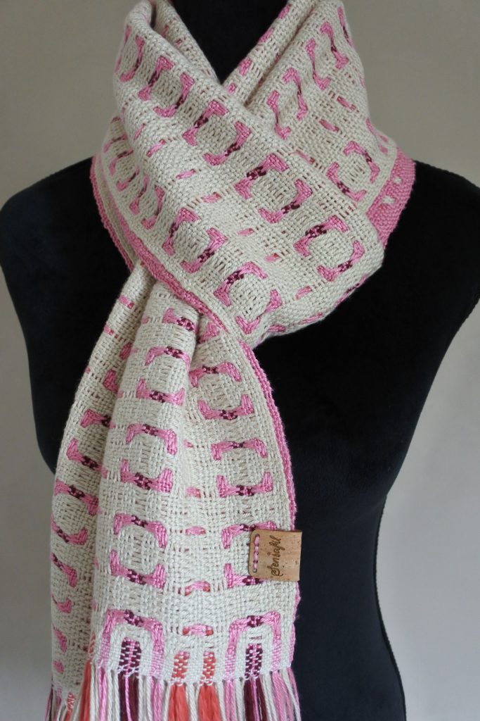 Cette écharpe est réalisée avec différentes fibres : coton – viscose – lin, toutes naturelles.